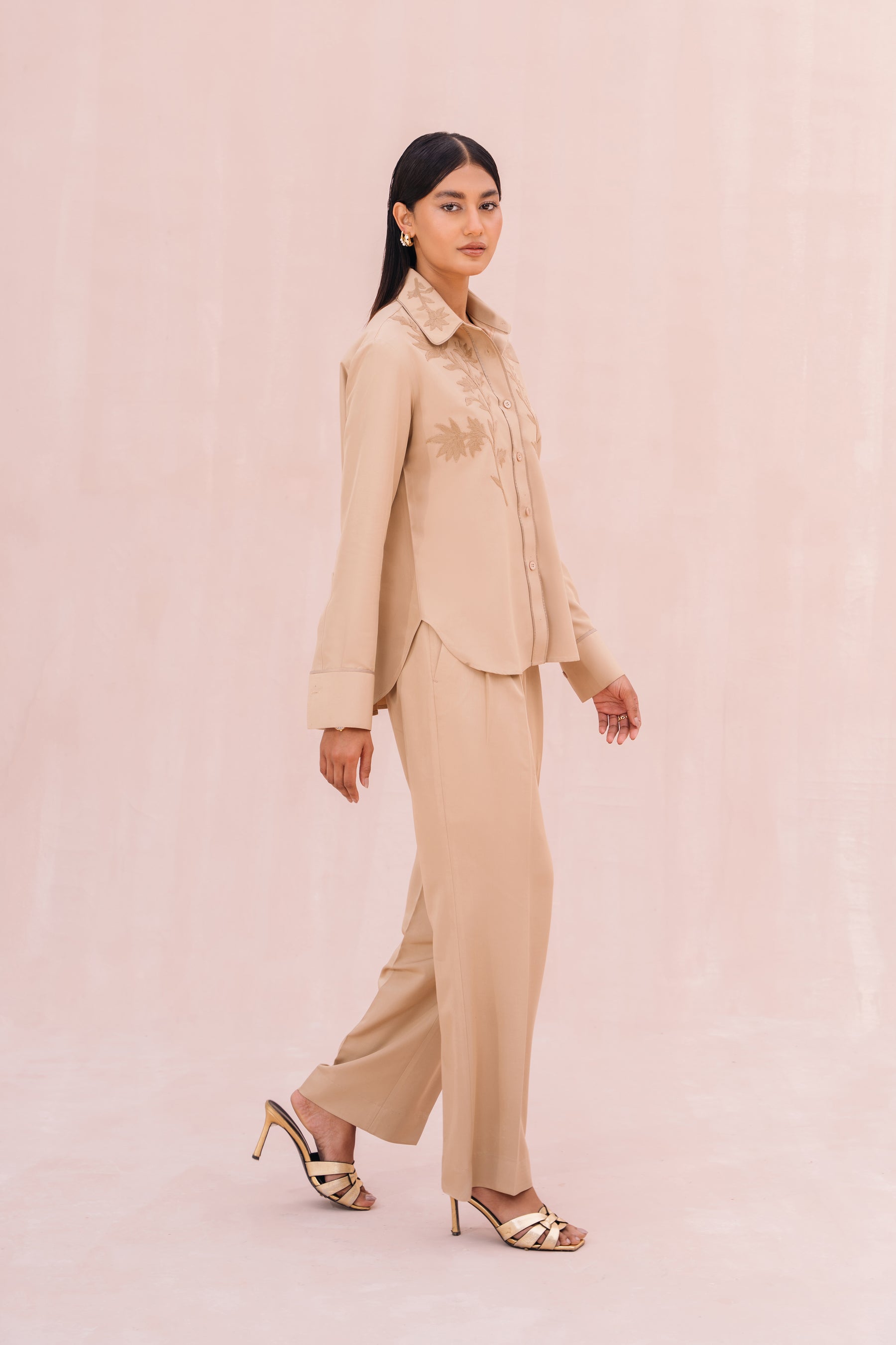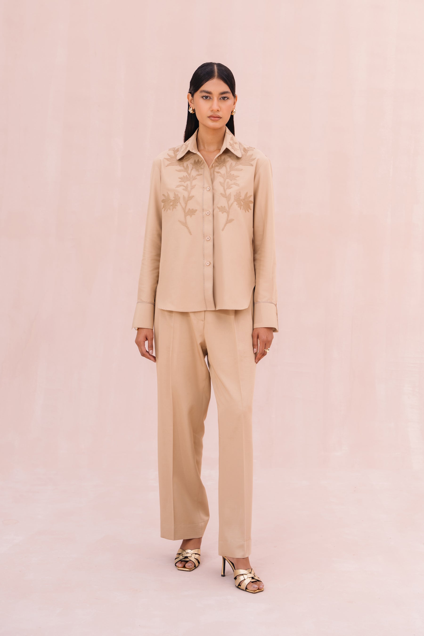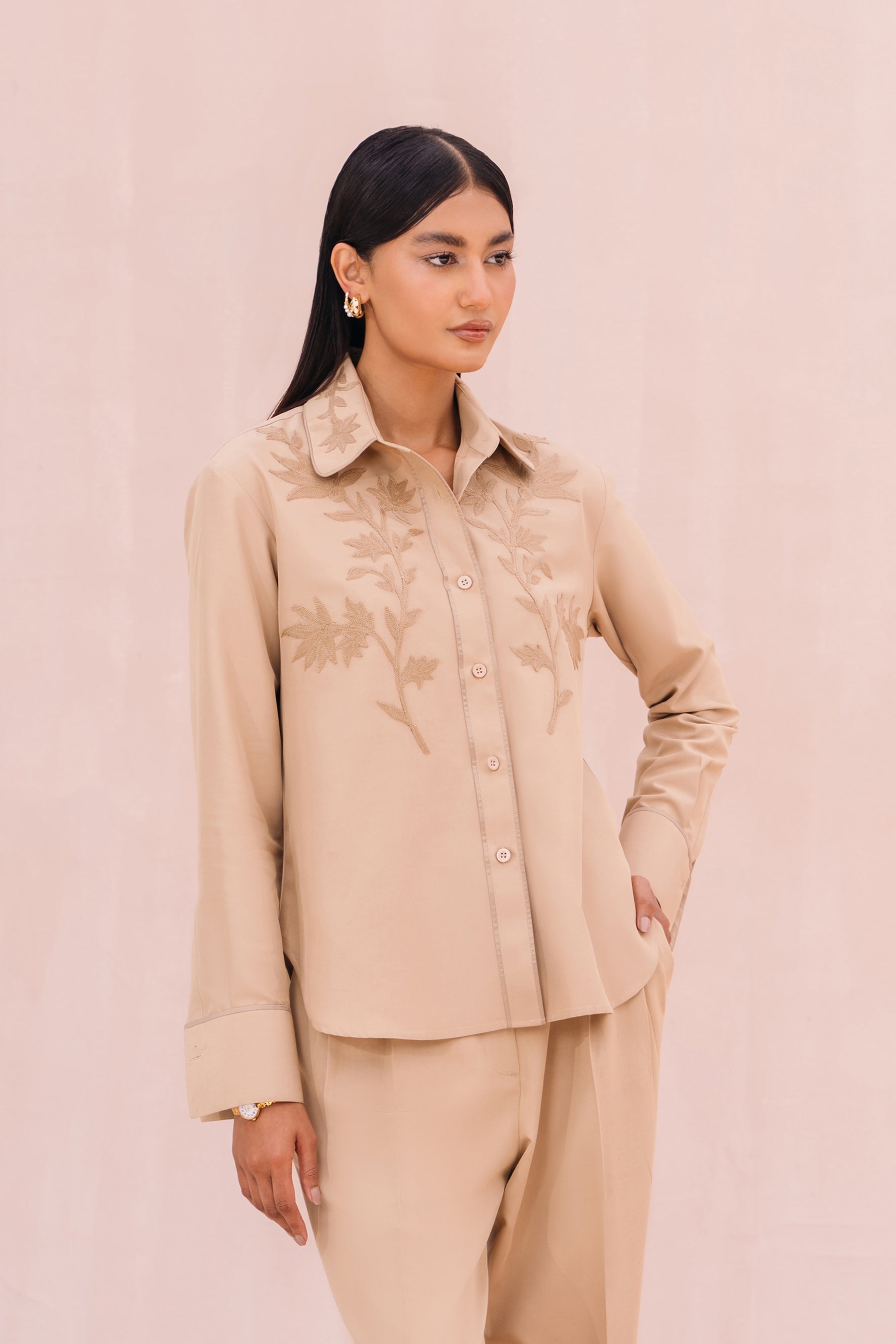 - Trim detail on collar, placket & cuff