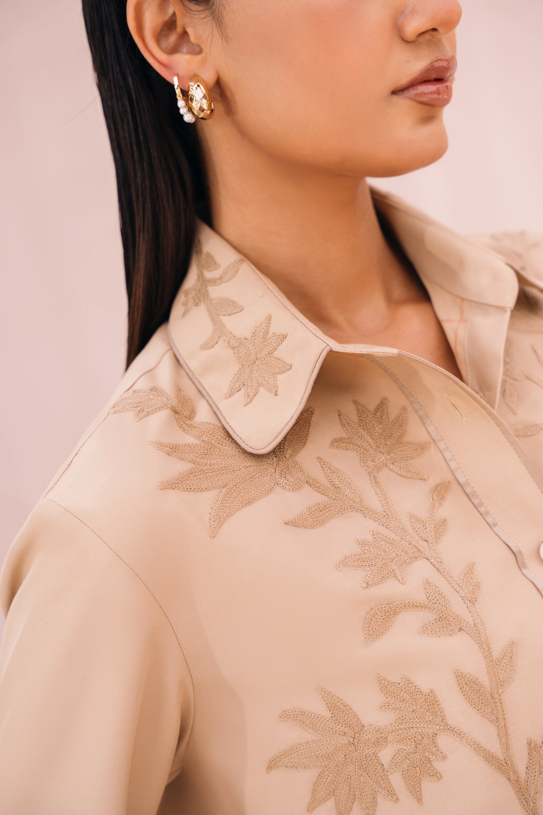- Embroidery detail on front & collar