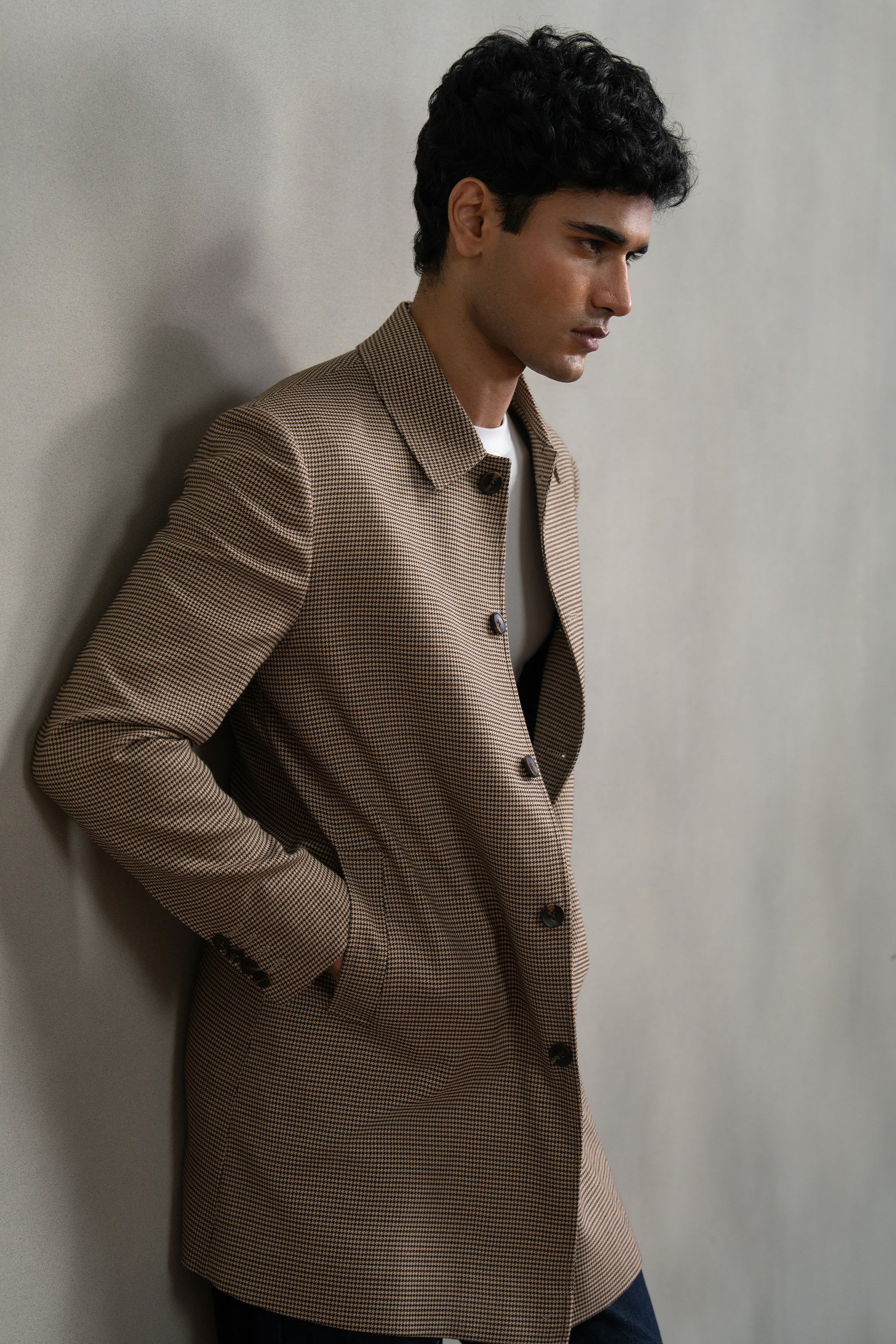 Brown Houndstooth Long Coat