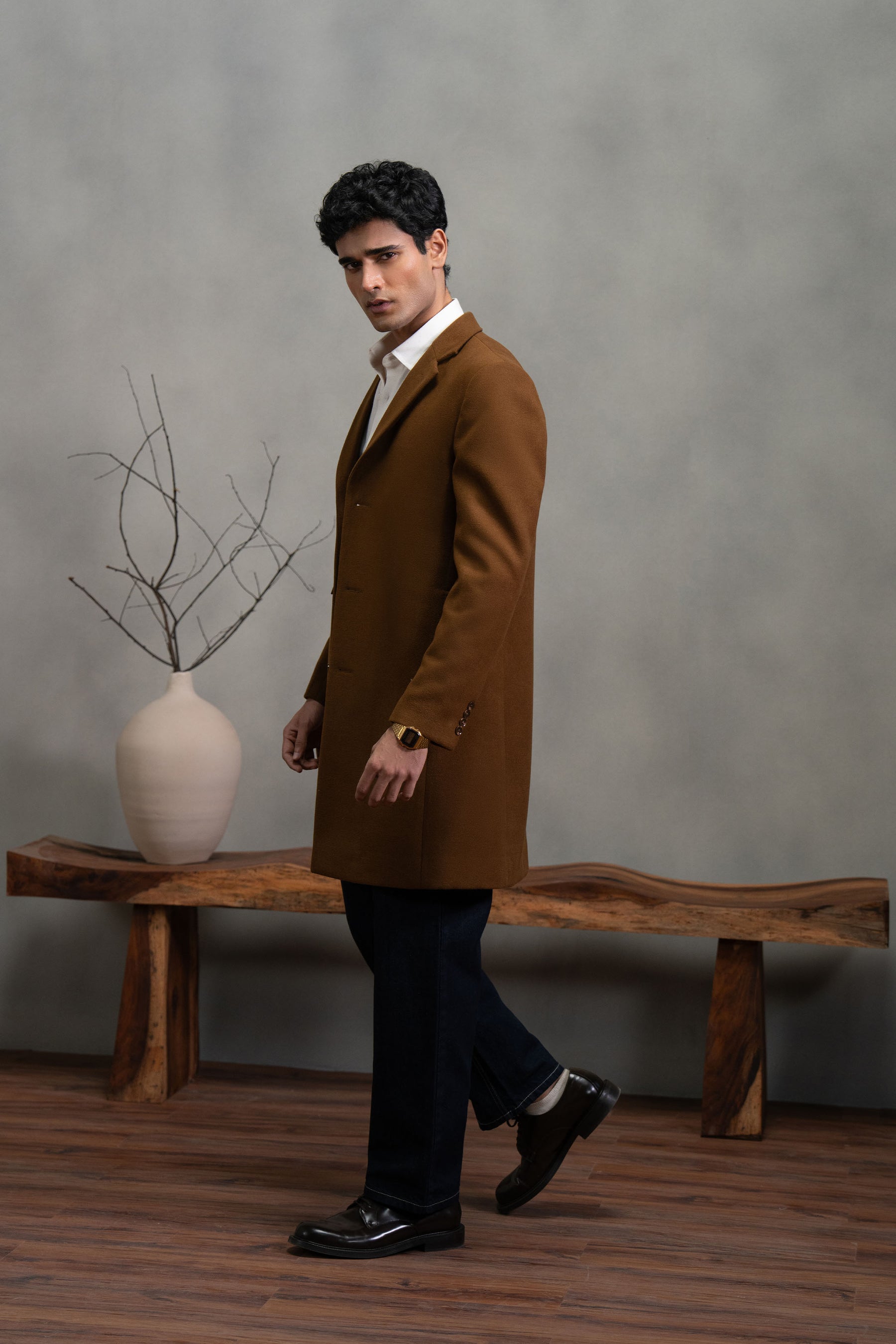 Brown Single Breasted Long Coat
