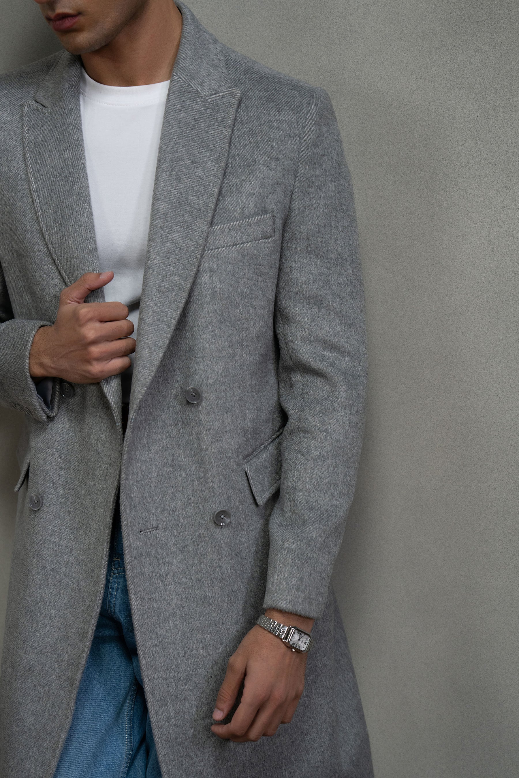Grey Double Breasted Long Coat