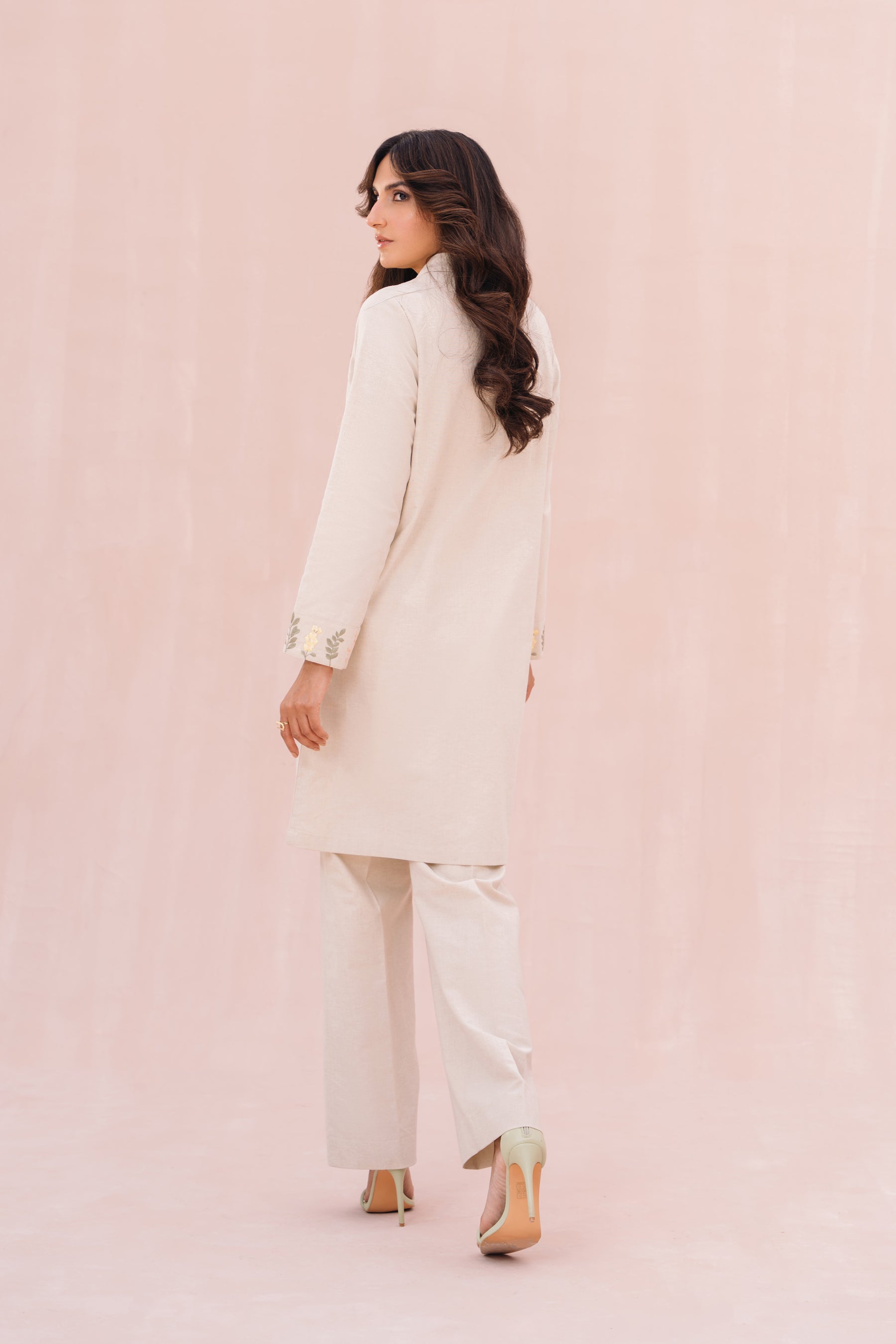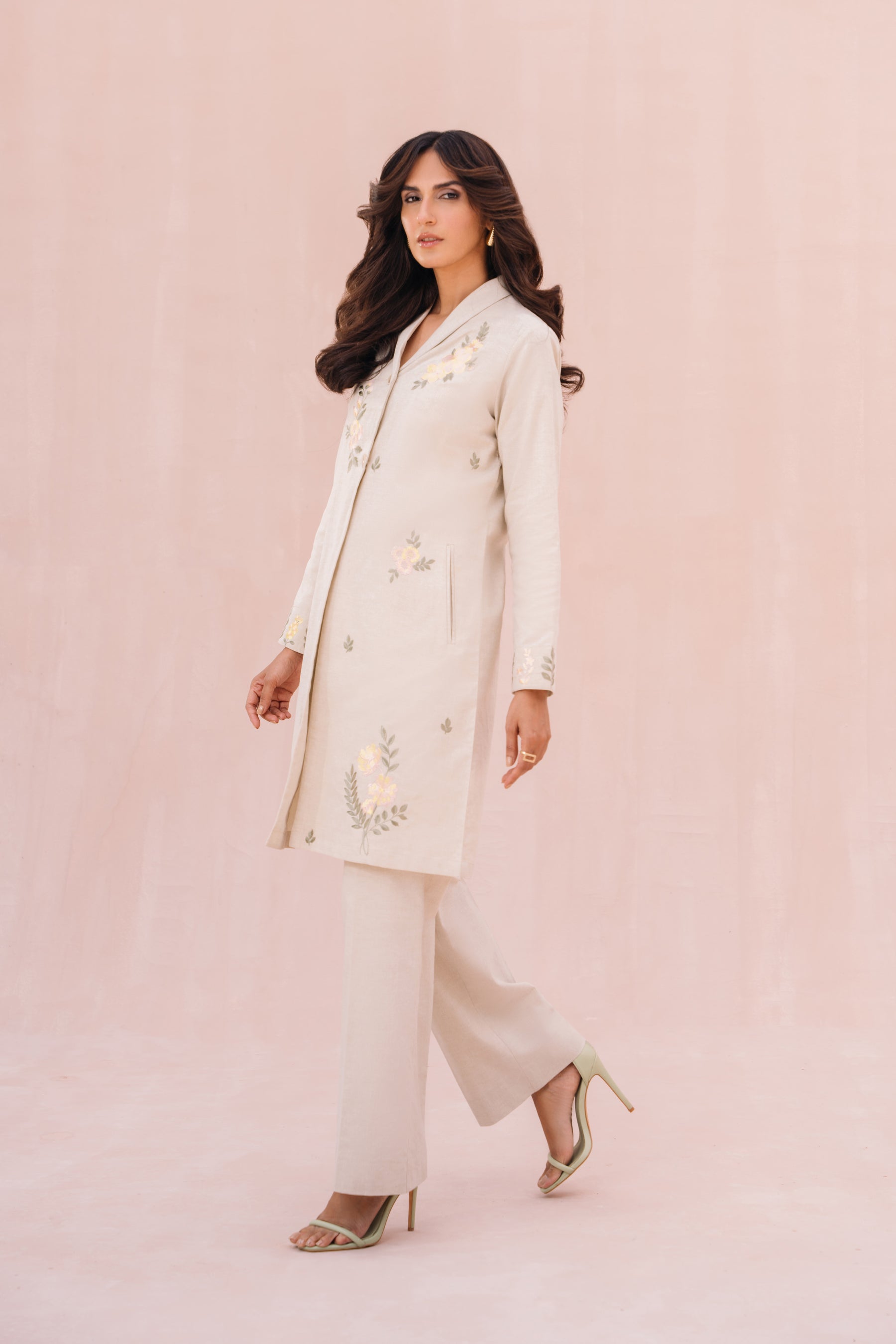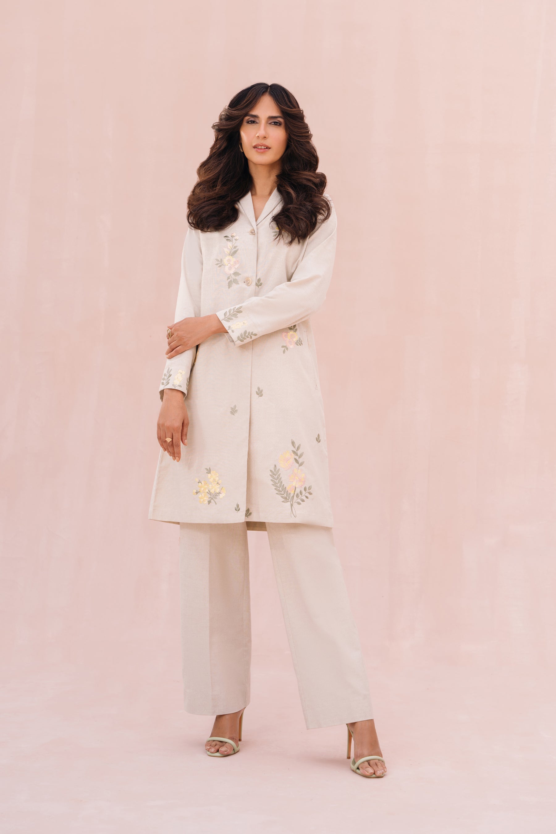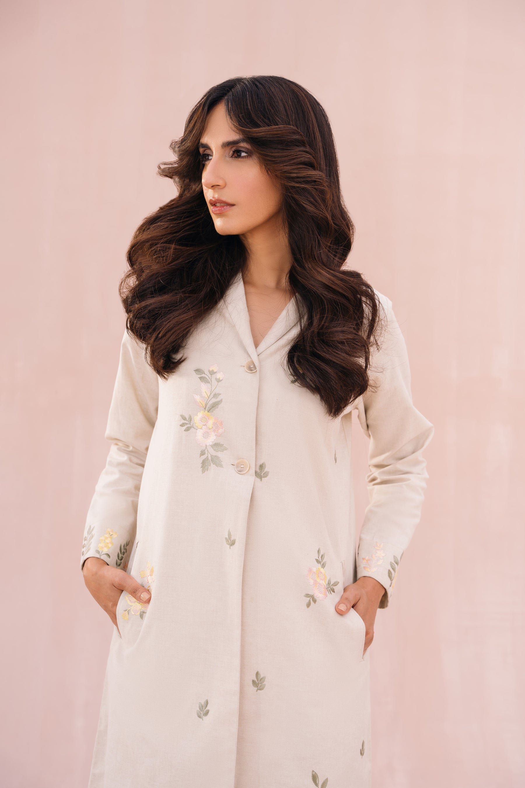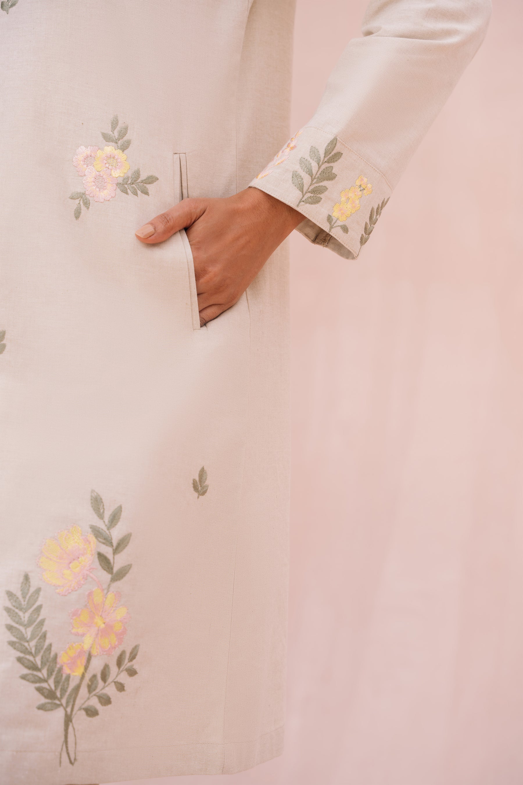- Floral embroidery detail at front & cuff