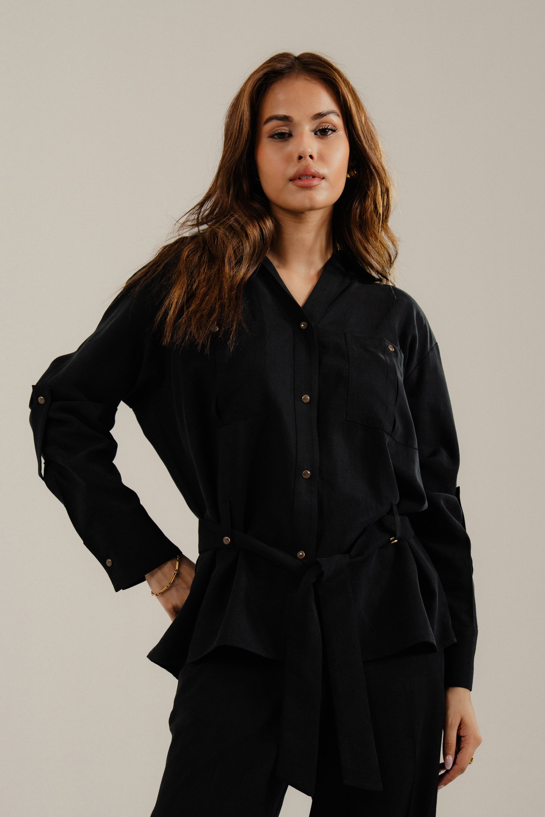 - Full sleeves with tab details