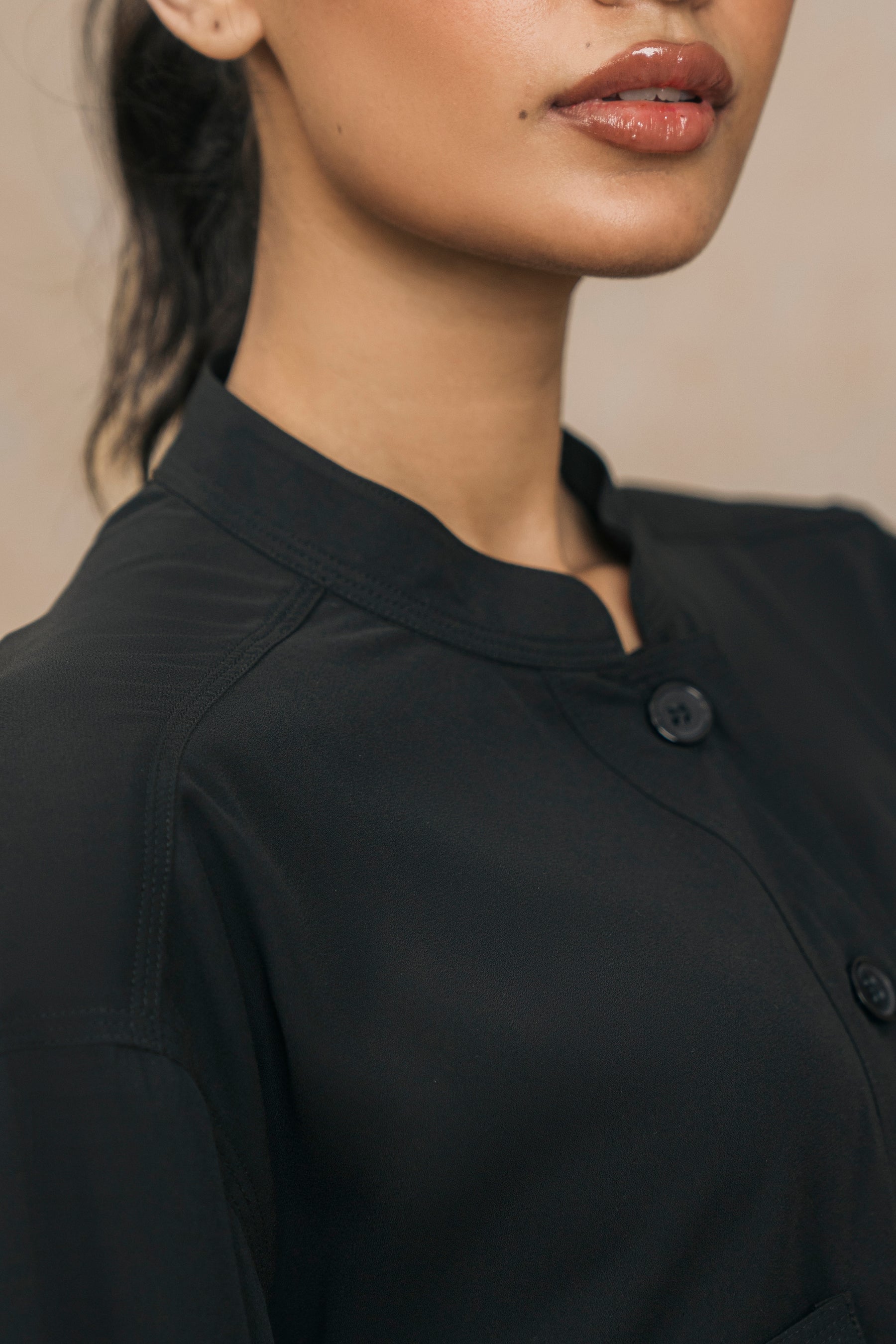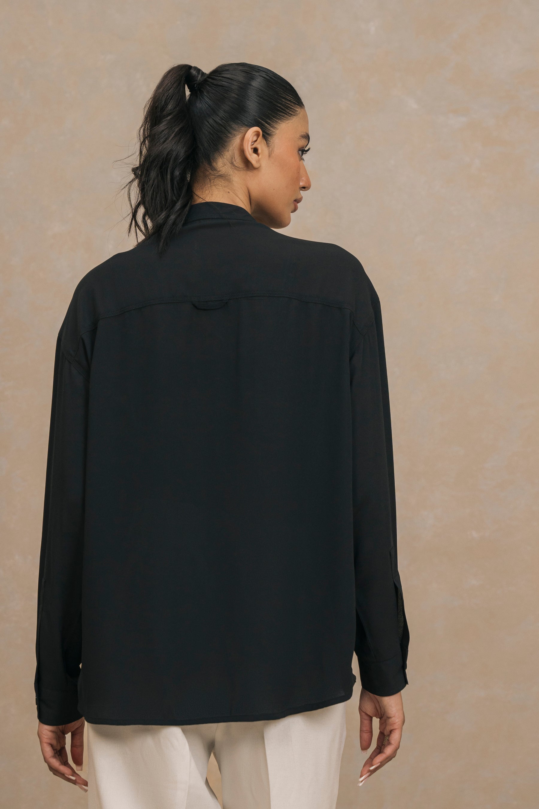 Black Mandarin Collar Shirt