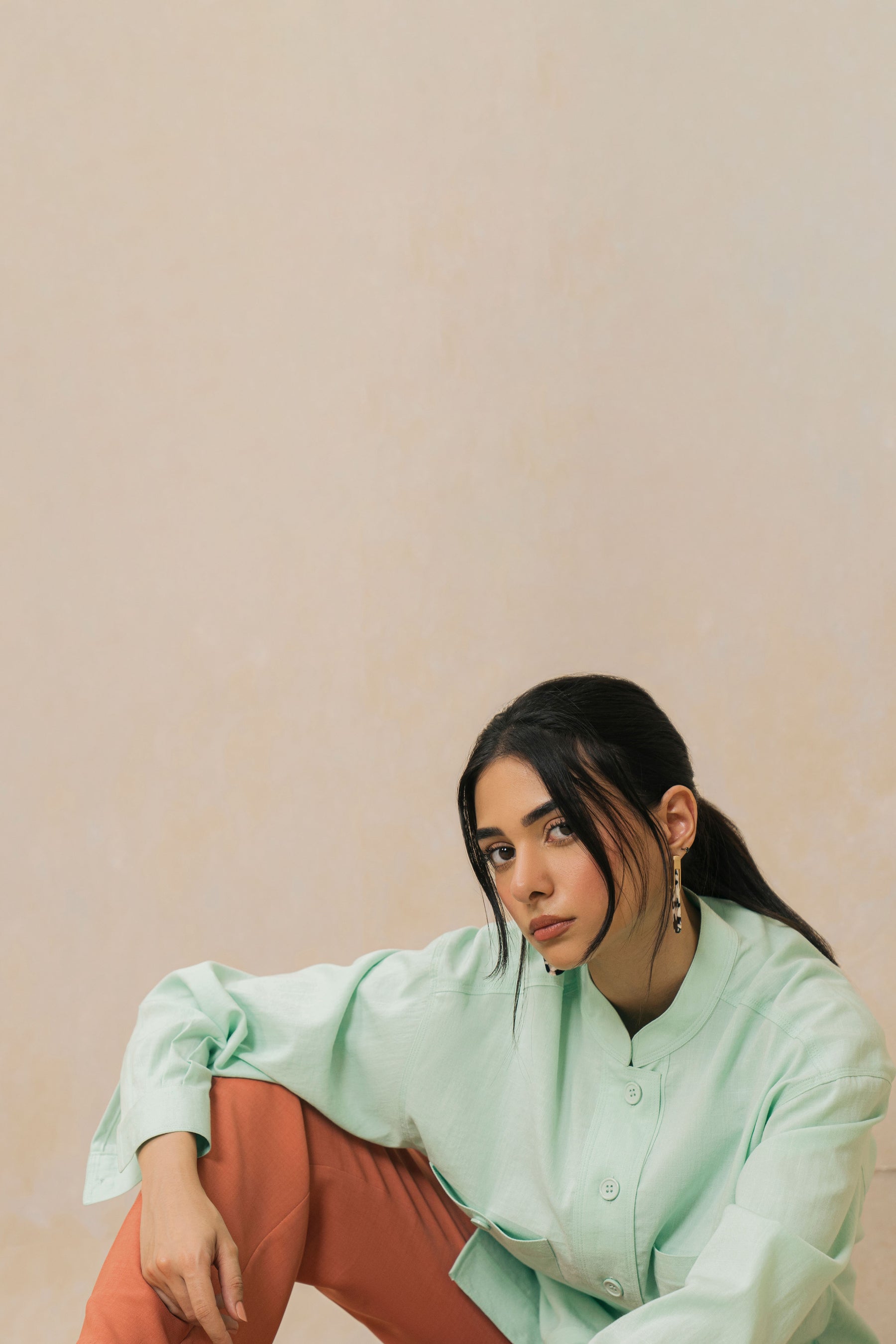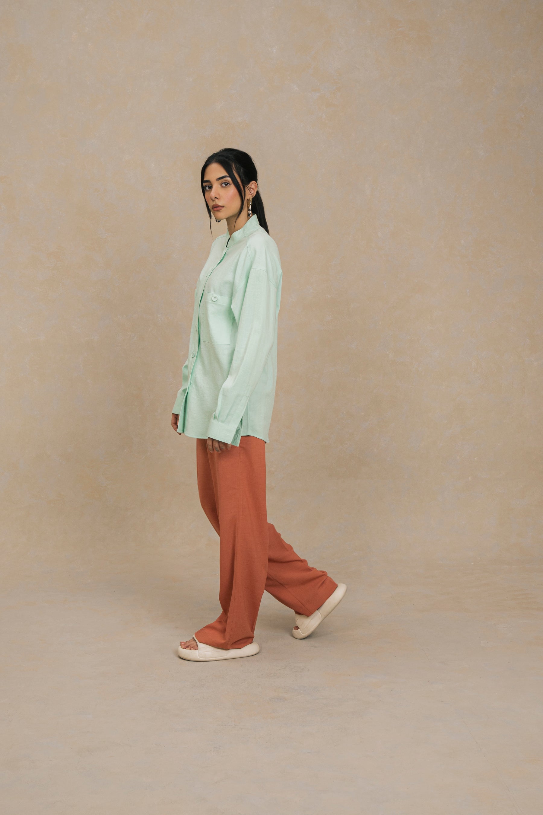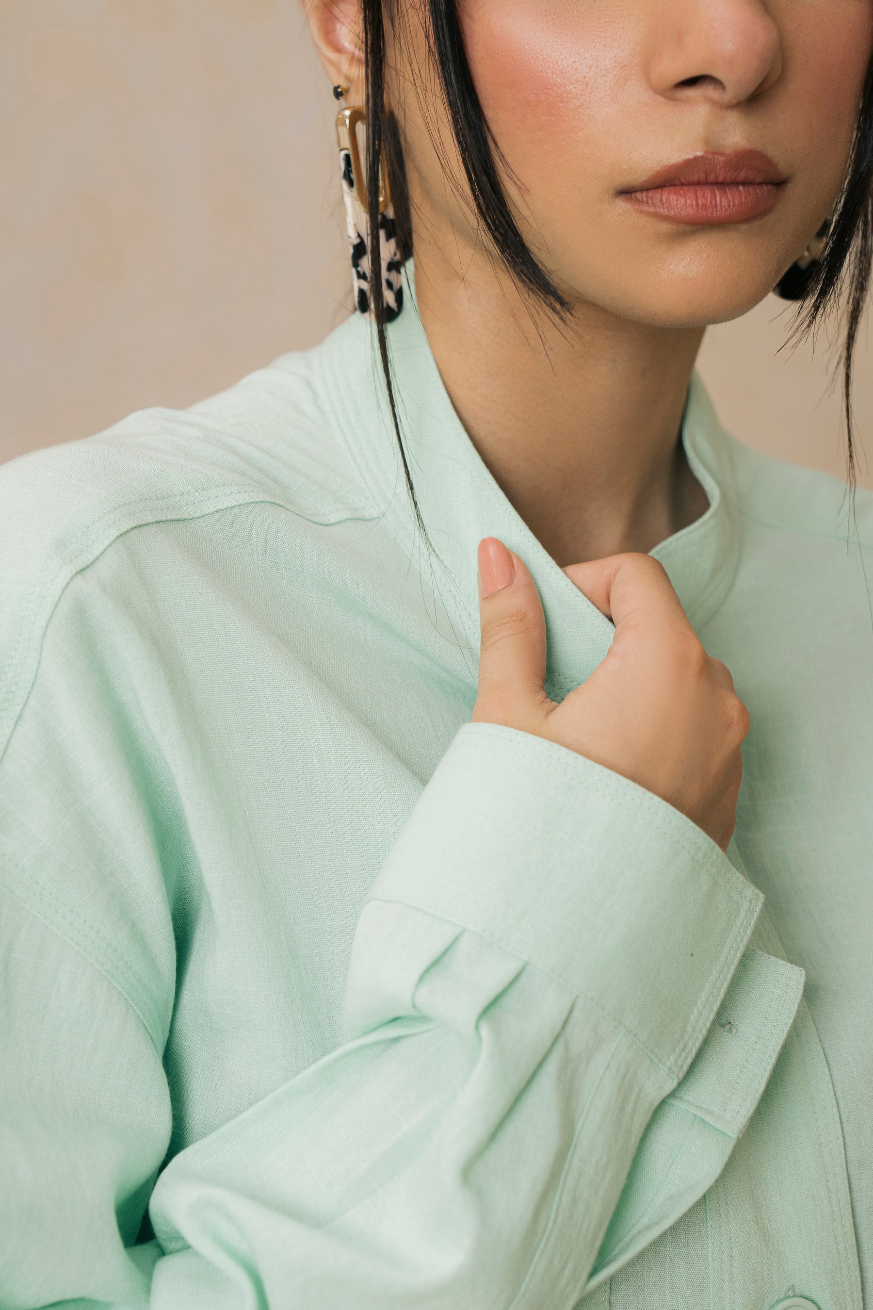 Mint Mandarin Collar Shirt