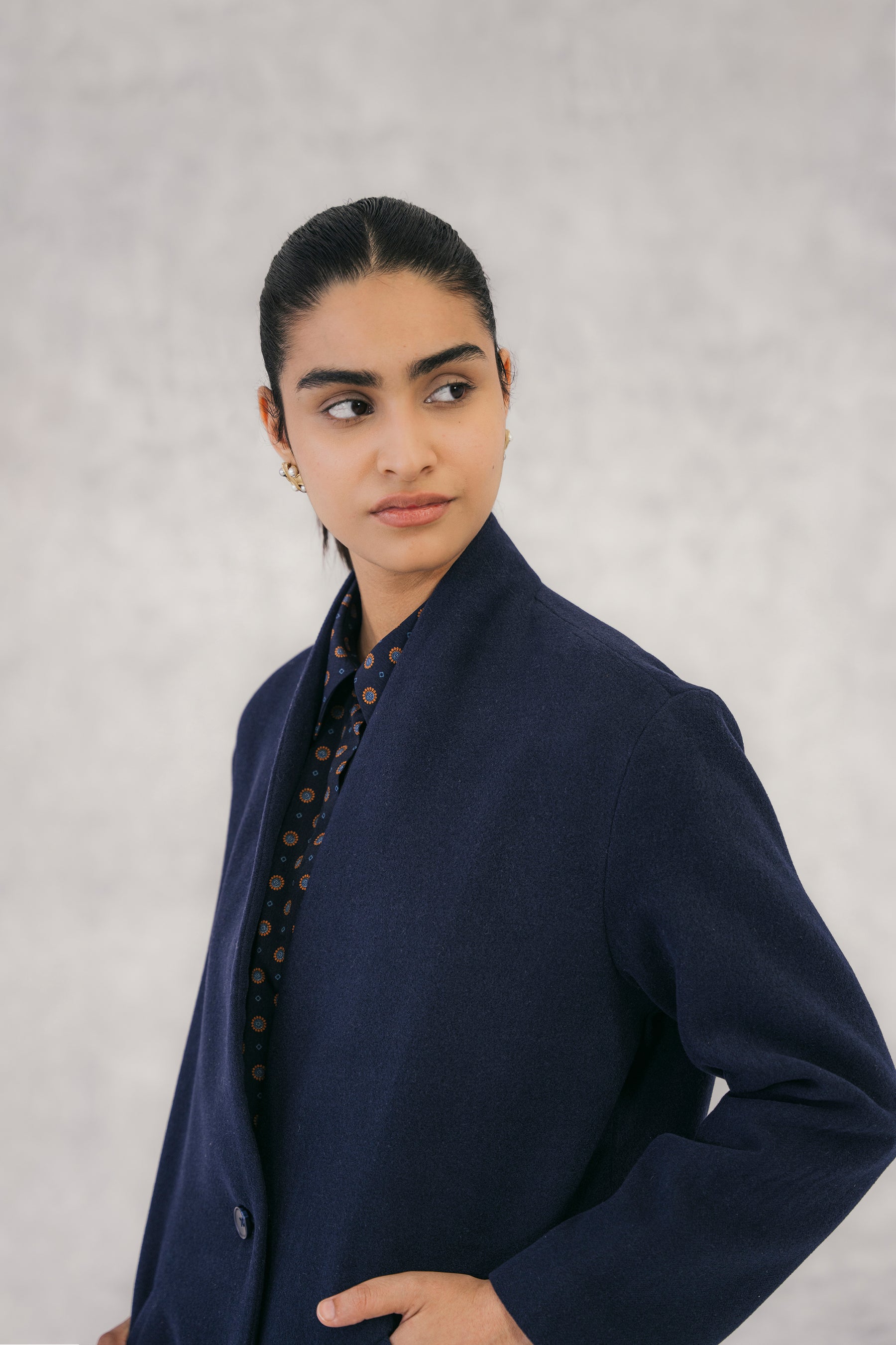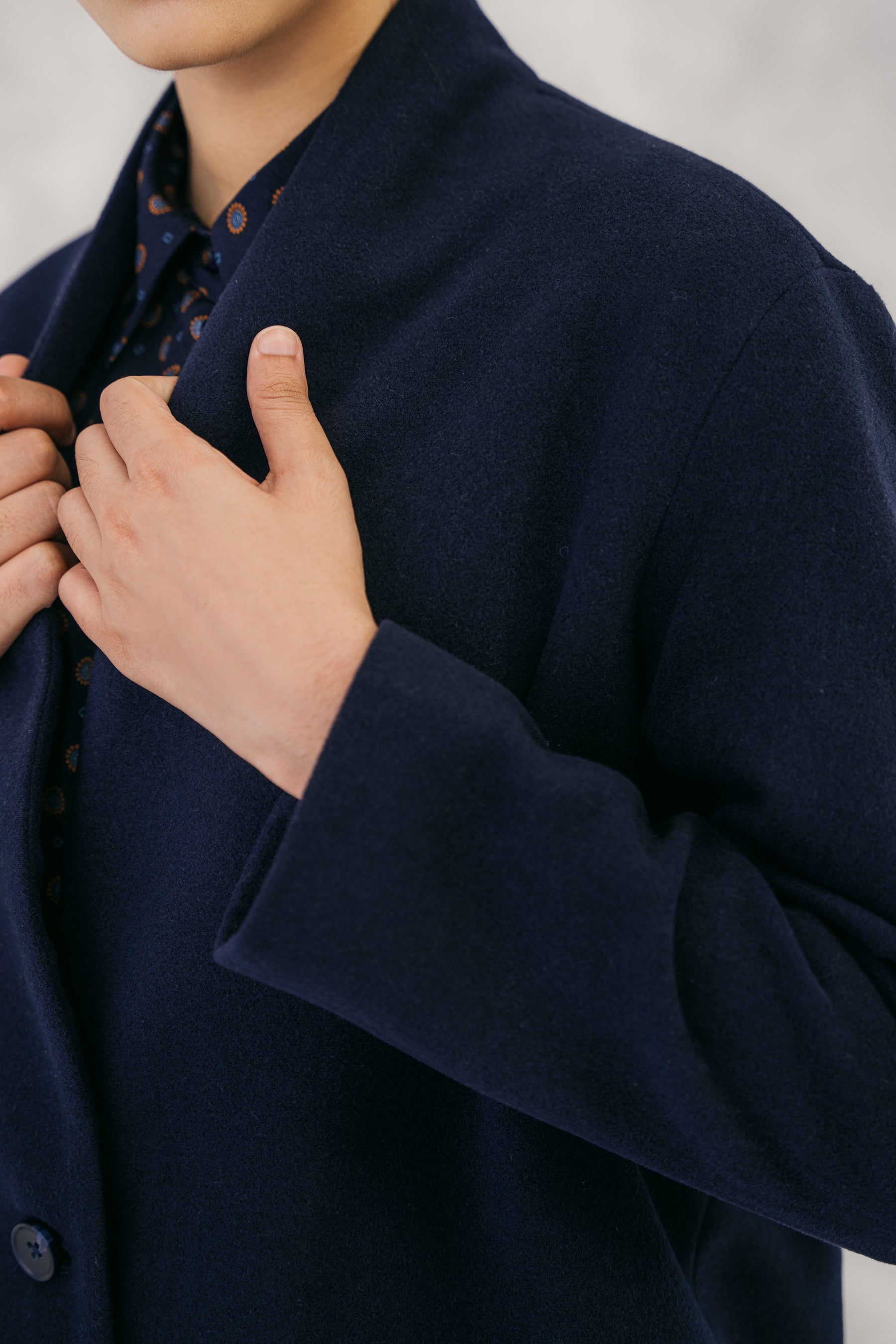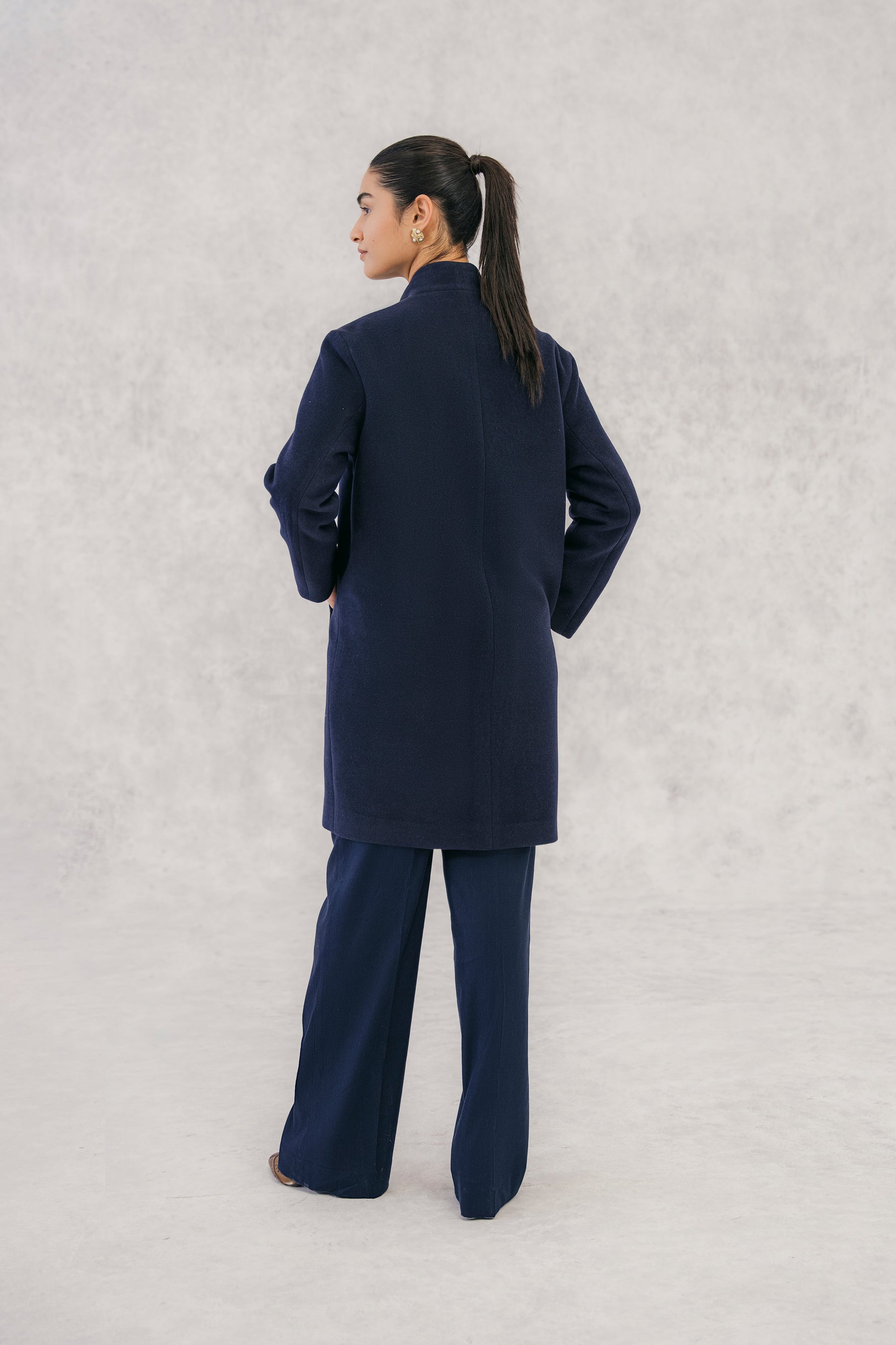 Navy Wool Coat without Lapel